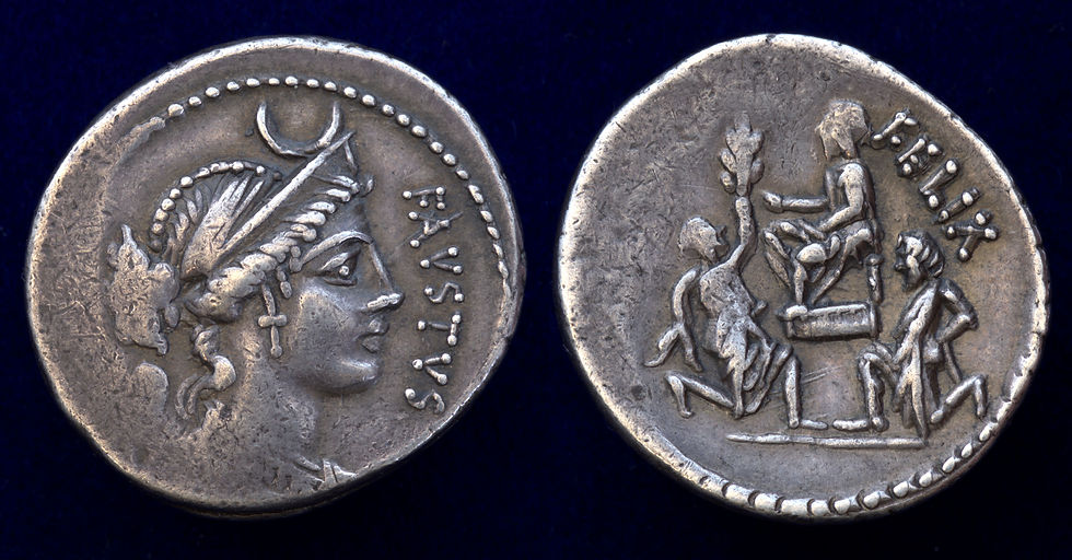 Jugurtha's capture is commemorated on a coin (Crawford 426) issued by Sulla's son, Faustus Sulla, in 56 BC.